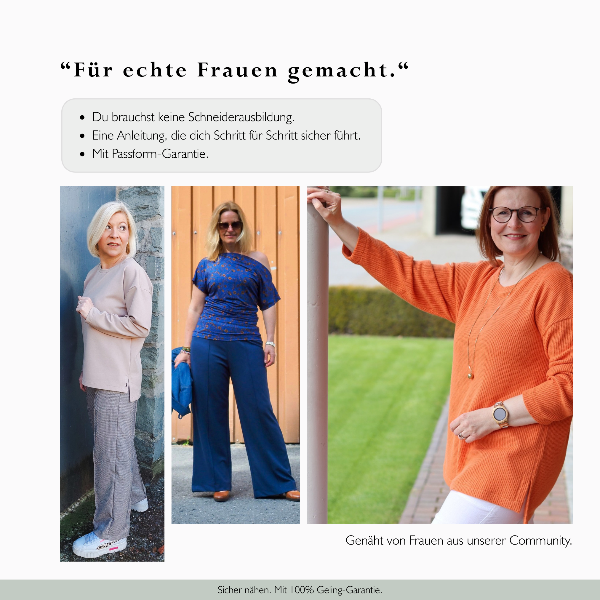 Damit du mit Freude nähst – und mit meiner 100 %-Geling-Garantie auf der sicheren Seite bist.