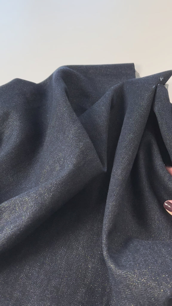 S06: Deadstock Designerstoff Jeans mit Glanzfäden (0,1 m)